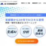 AI CONNECTは、経済産業省「リスキリングを通じたキャリアアップ支援事業」に採択された、キャリアアップを目指す方向けのAIスキル学習プラットフォームです。